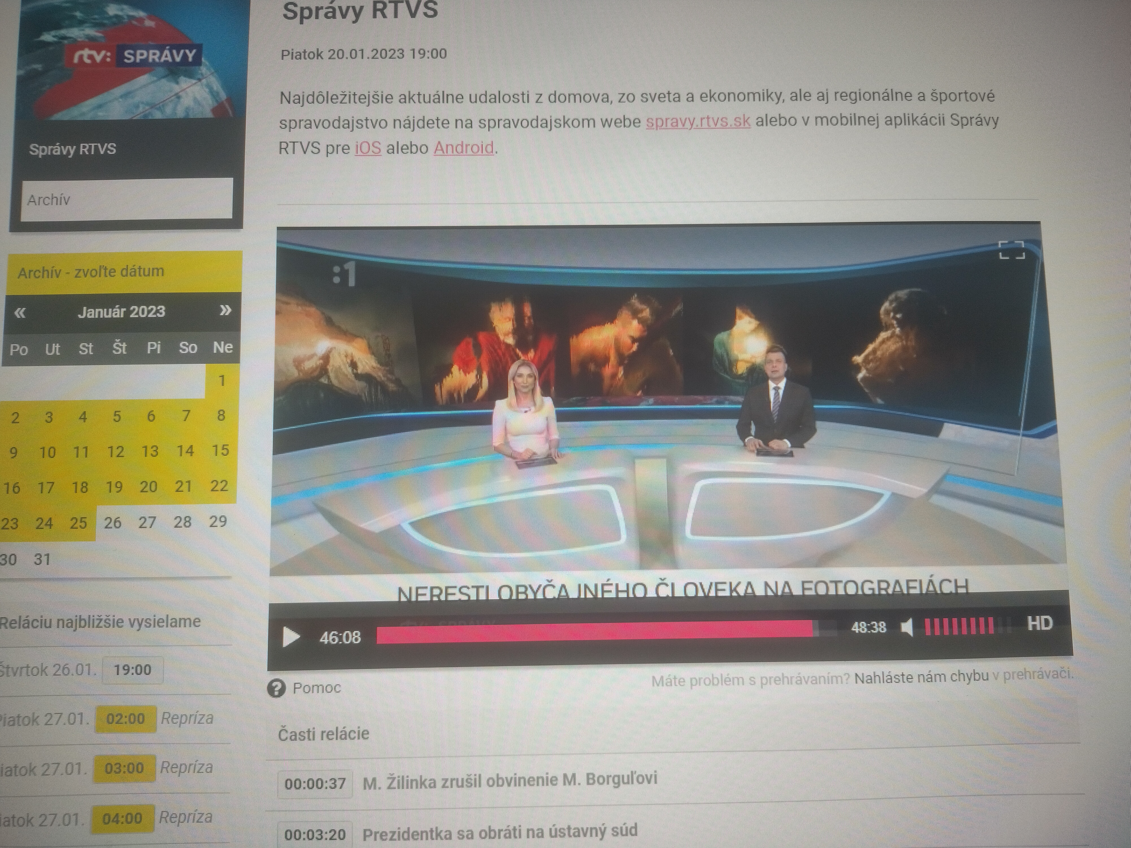 screenshot from Main RTVS News